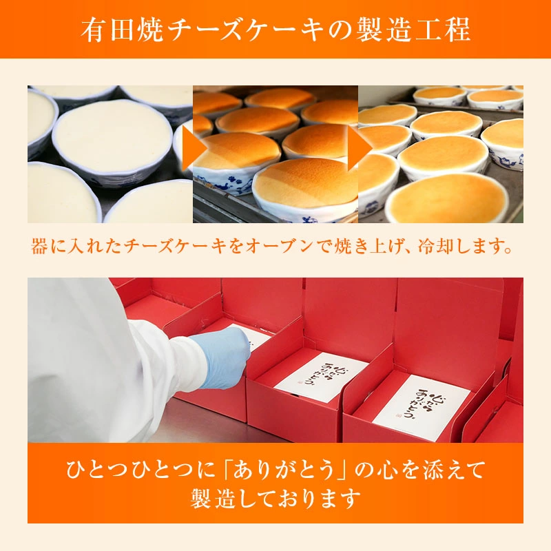 有田焼チーズケーキ(幸せのチーズケーキ)は、太陽の恵みをいっぱいに取り入れた素材を厳選し、こだわり抜いたクリームチーズや佐賀県産の卵をたっぷりと使用した、まろやかでとろけるような食感・・・幸せいっぱいなテイストでお届け致します。