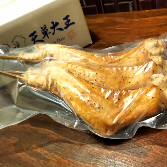 熊本県天草にて無人販売機で販売している人気商品「天草大王」の大手羽先1本焼きの3本セット。