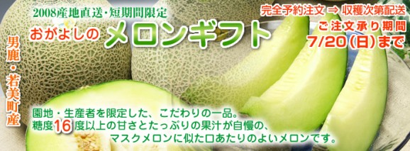 この2年間温めてきました、 「がんこ親父のこだわりメロン」が無事交渉成立し、今夏よりおがよし商店でネット販売できる事になりました。念願の地元の特産品「わかみメロン」を紹介することができ、本当にうれしい限りです。