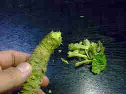 (!)茎を取っていくとその中にもわさびの根が隠れています。