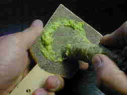 (!)ゆっくりおろす事によりわさびの細胞がより細かくつぶれ細胞の中の辛味成分や香がでてきます。