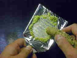 (!)砂糖、を振る事によって浸透圧作用でわさびの細胞の中から辛味成分がより引き出されます。