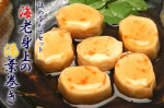 ハモのすり身、ソフトすり身(タラ、卵白、大豆油)に、甘海老のむき身と人参を入れて練り合わせ、 塩、調味料で薄味を付け、湯葉で巻いて蒸し上げています。