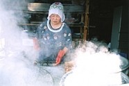 釜揚げちりめんじゃこ(釜揚げしらす)は創業以来、今も昔も変わらず大きな釜で手作業で茹で上げています。
