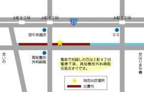上町4丁目電停を南へ直進、高知整形外科病院交差点のすぐそばに中田遊亀商店は出店しています。